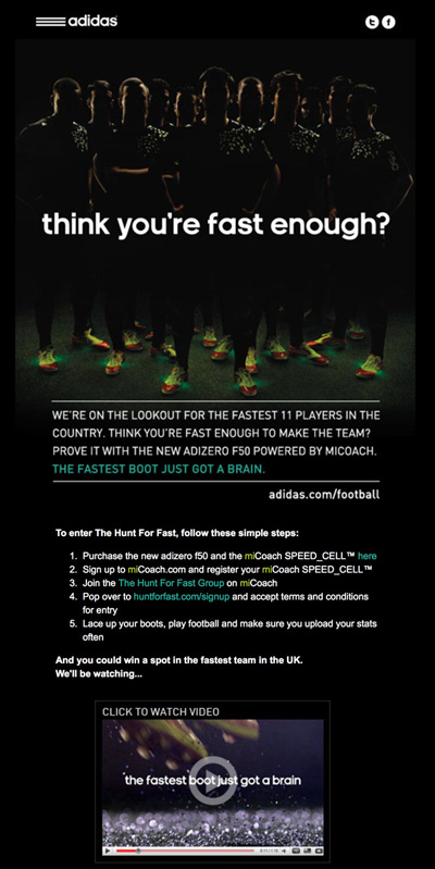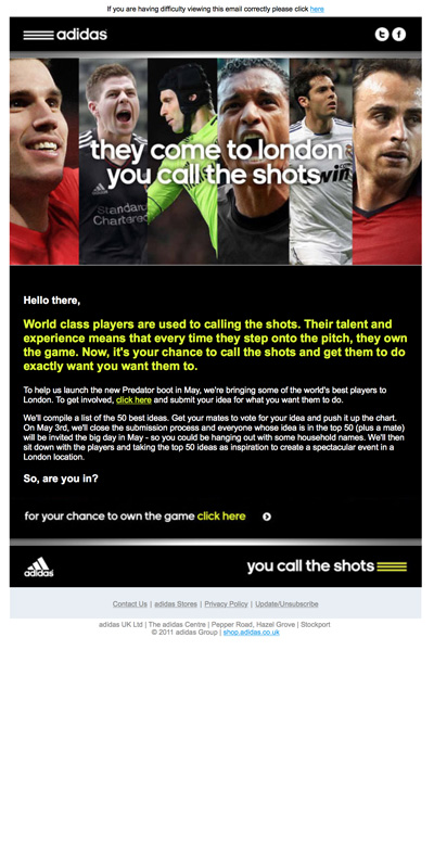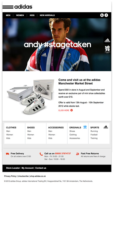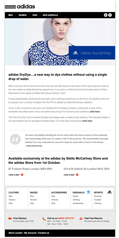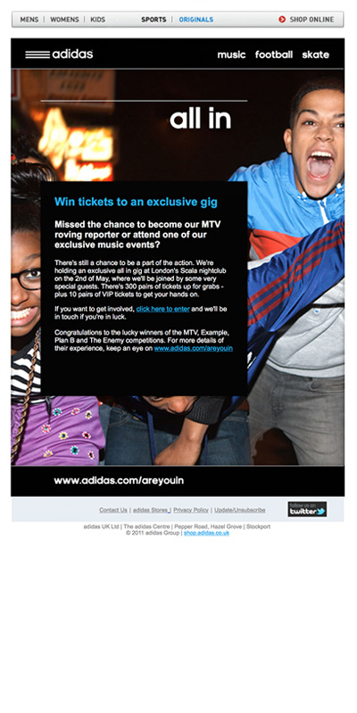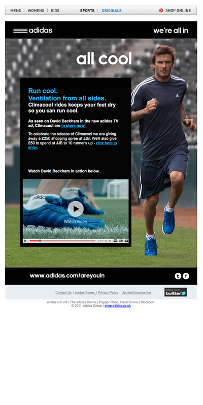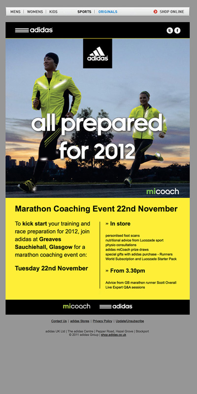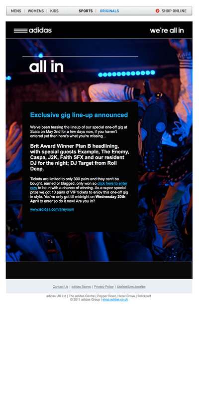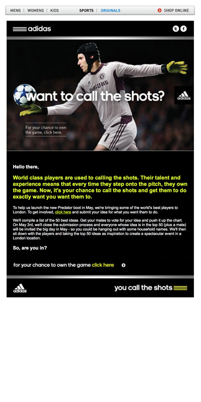 Understanding the importance of working to strict brand guidelines with a global brand like adidas, we delivered consistent, effective communications on brand and on-time, working with adidas for over 5 years on multiple email campaigns.