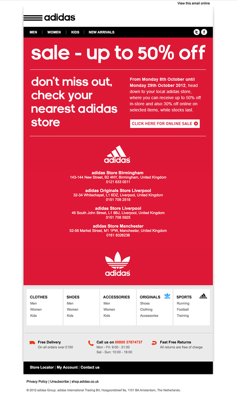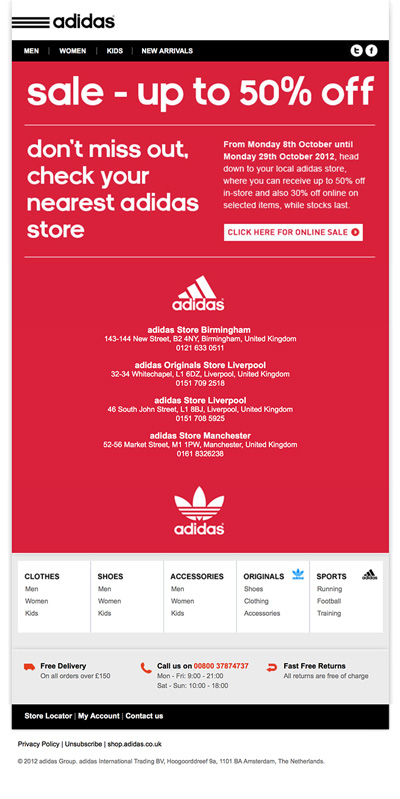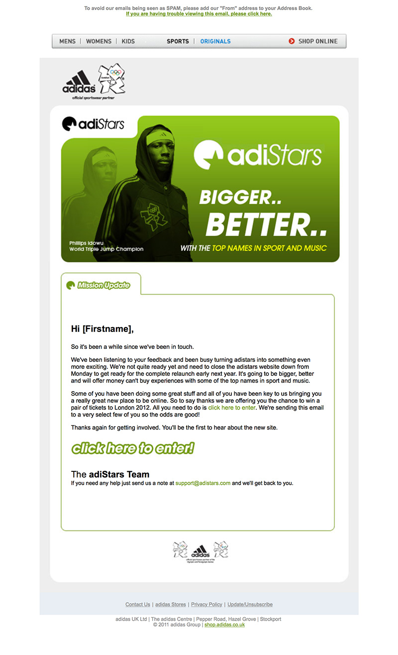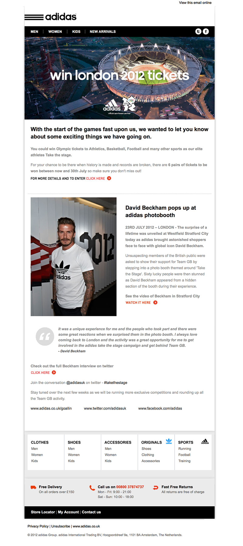 Understanding the importance of working to strict brand guidelines with a global brand like adidas, we delivered consistent, effective communications on brand and on-time, working with adidas for over 5 years on multiple email campaigns.